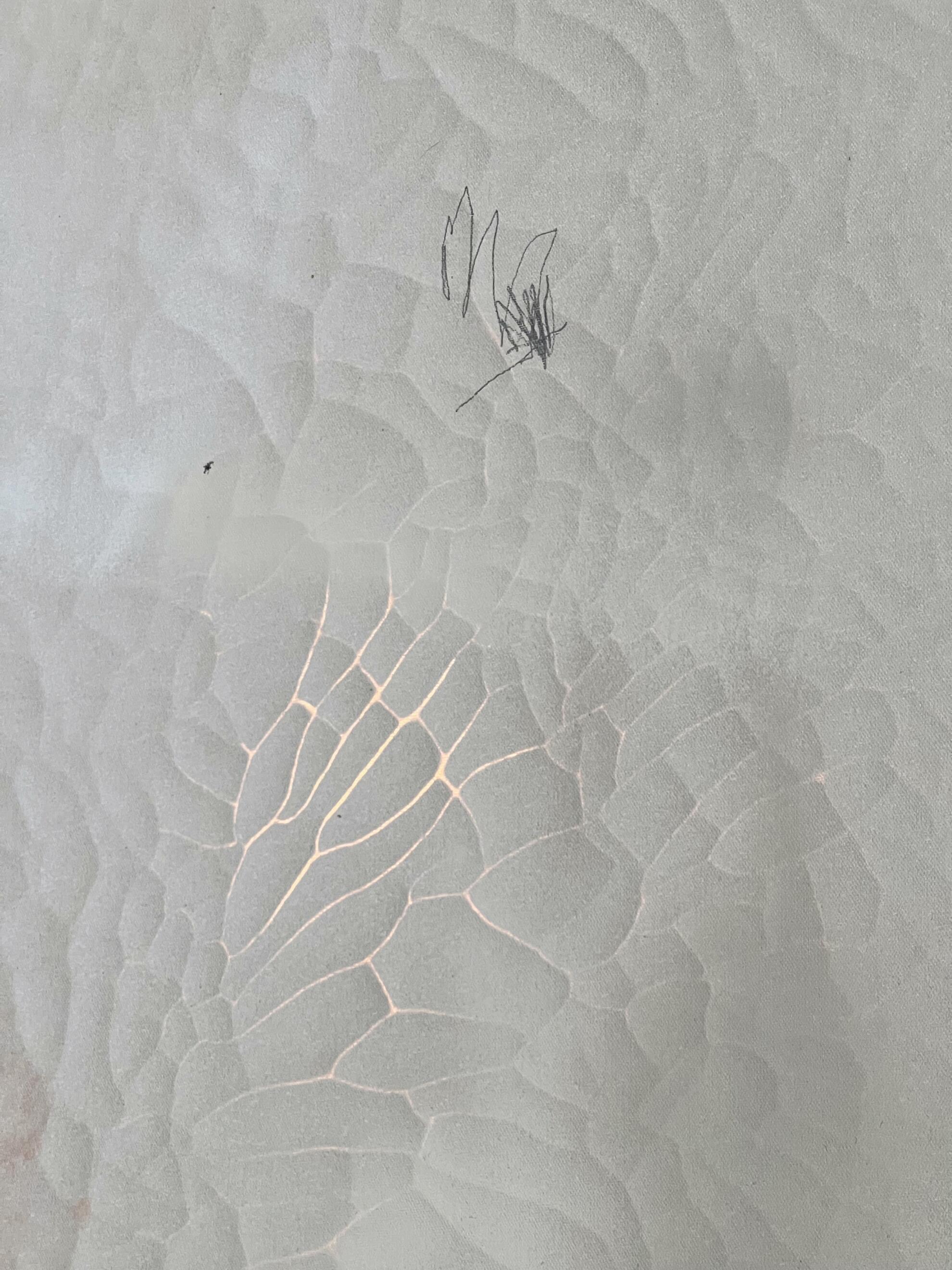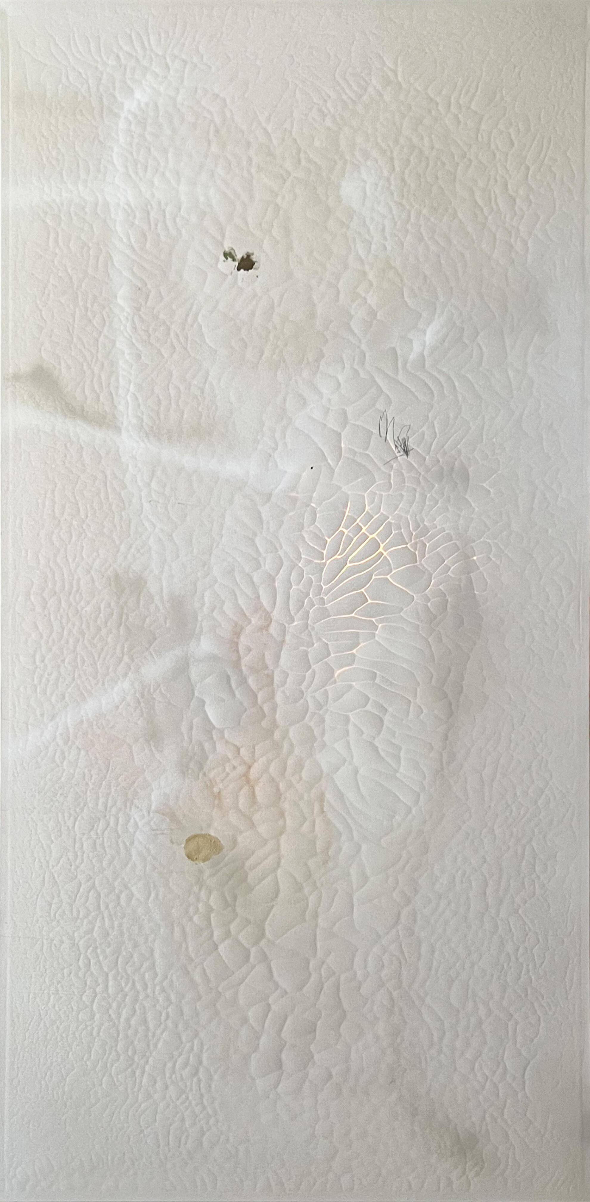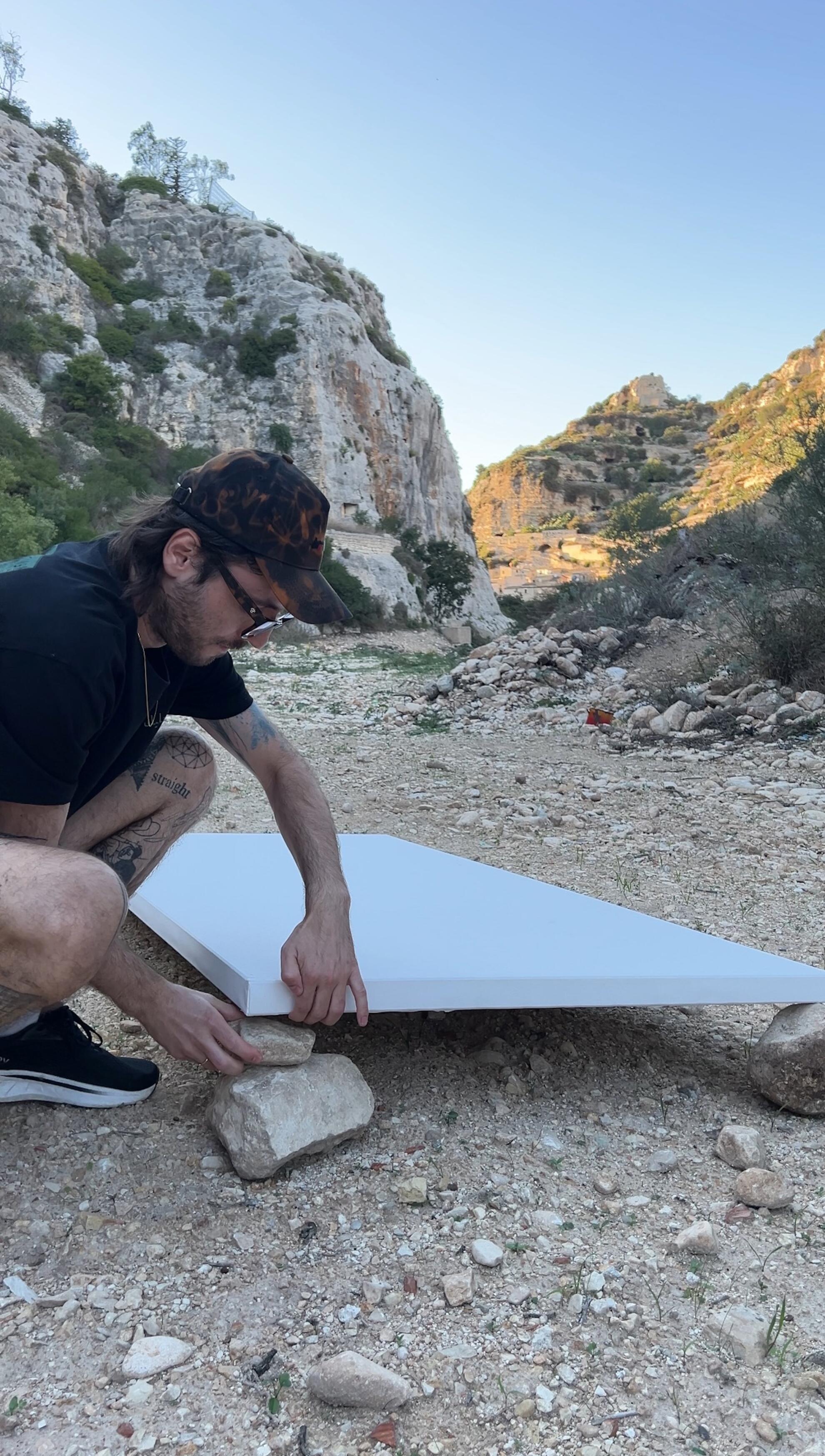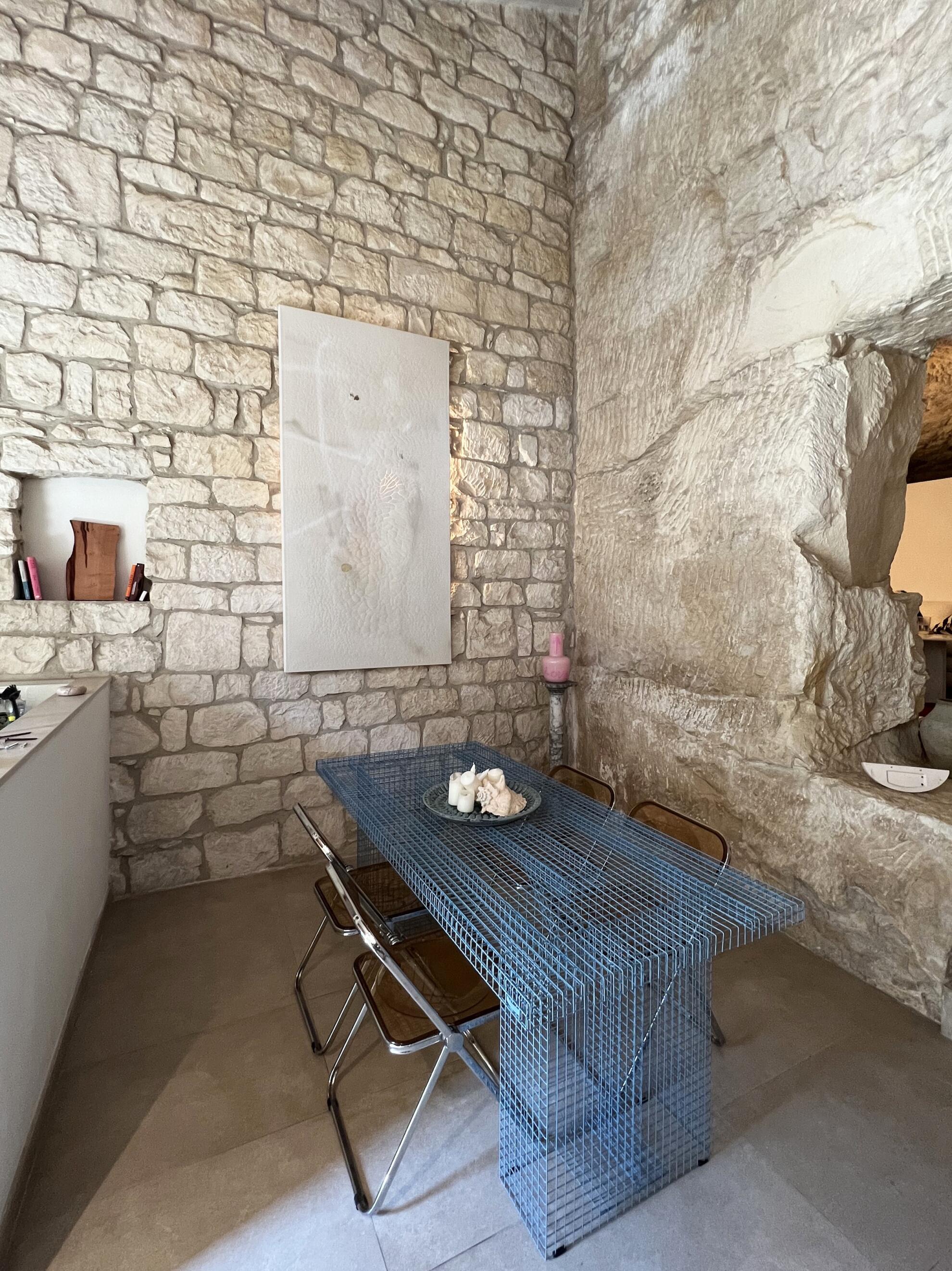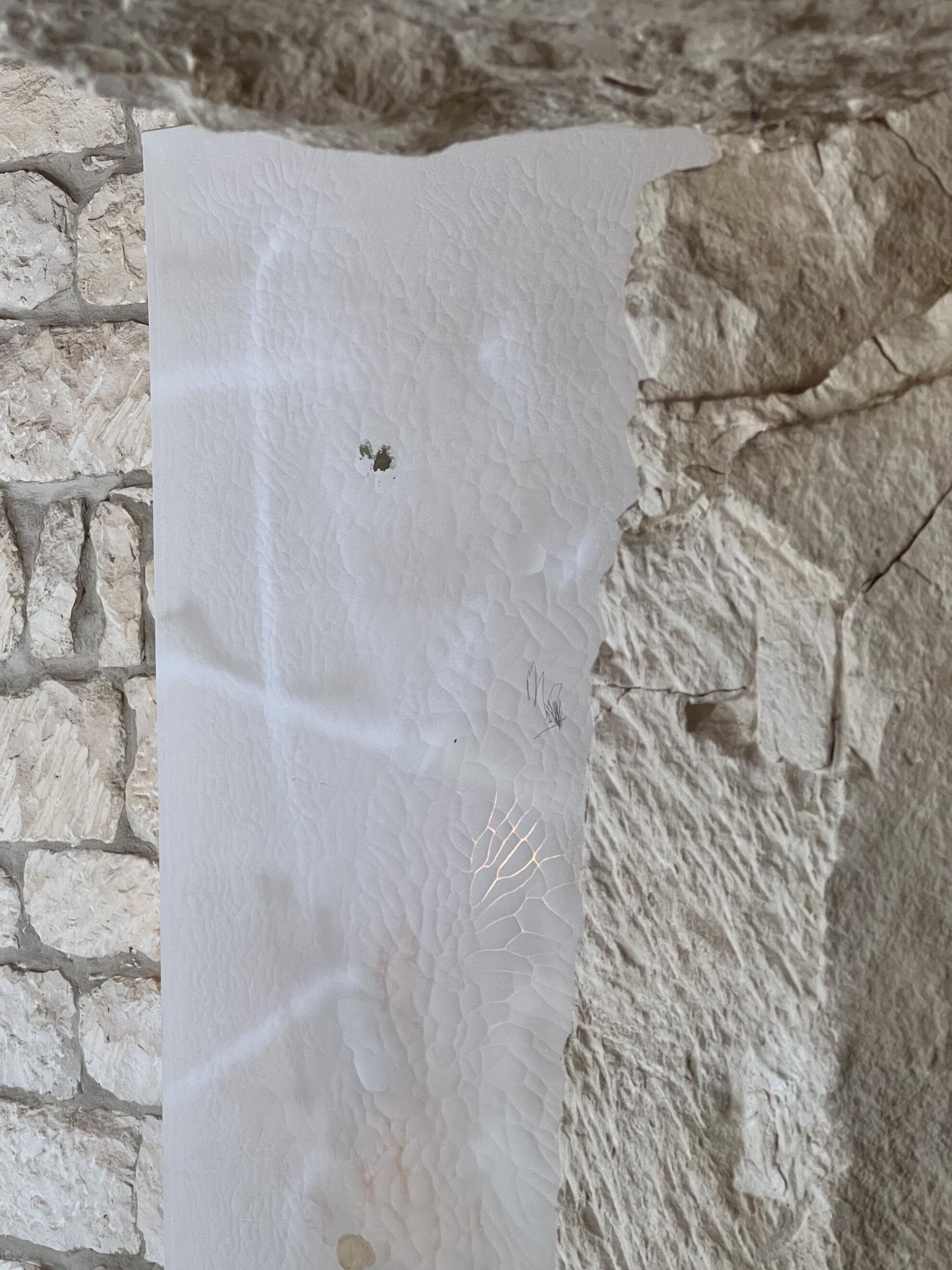 "I wanted to try to create something specifically for this space. Something that would work with the interior in terms of composition and color, complementing it while also serving as ambient lighting and a variable element that, thanks to its plasticity, reacts to the light in the space, similar to the rock present everywhere around Casa Blanca, which also looks different depending on the time of day and where we look at it from. This has resulted in dozens of different variations of the same image. The play of light, shadows, and the placement of the work in space is exactly what I have been most interested in and enjoy exploring lately."